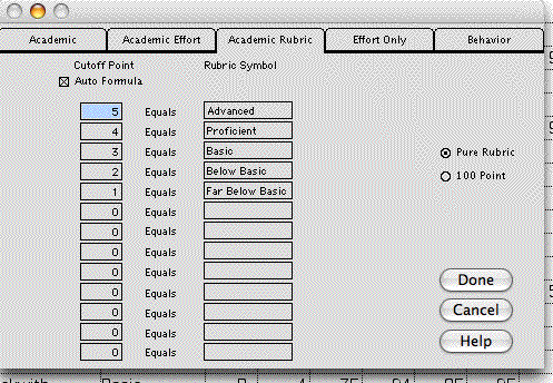 To understand some of the thinking behind PGGP 5.0, you may want to read George's Ravings on Standards-Based grading. Having spent my life in elementary schools, (well I did go to high school and college) I have seen pretty much everything: Ungraded, Effort Only grading, the Think System (teacher looks up, squints and writes a grade), adding and dividing, calculators and finally electronic grade books. So, I ramble a bit.