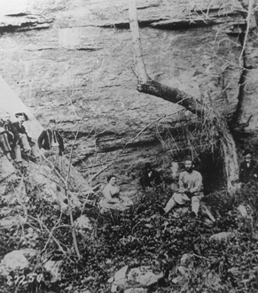 Soldiers came from Camp Verde to picnic in 1875. The large sycamore on the left is the same tree that is there today.