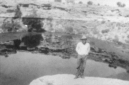 Young Bill Back, standing on the rim. In the background are the dwellings seen in the "Back to the Well"